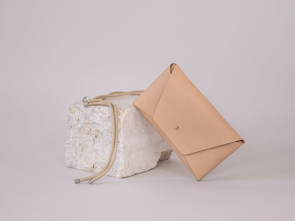 - Material: Recyceltes Leder aus Lederresten & Naturkautschuk, rPET Kordeln, Details aus Metall