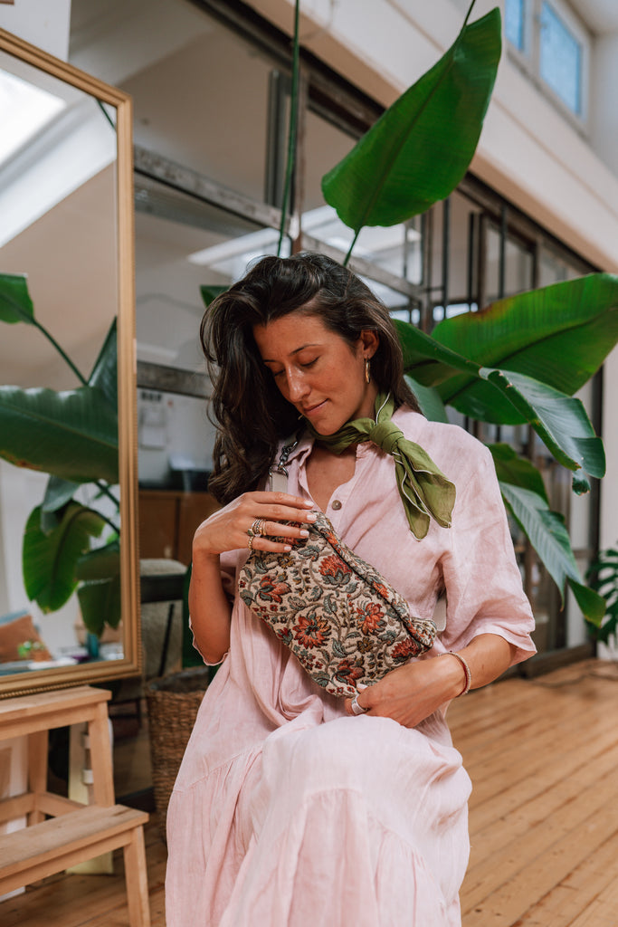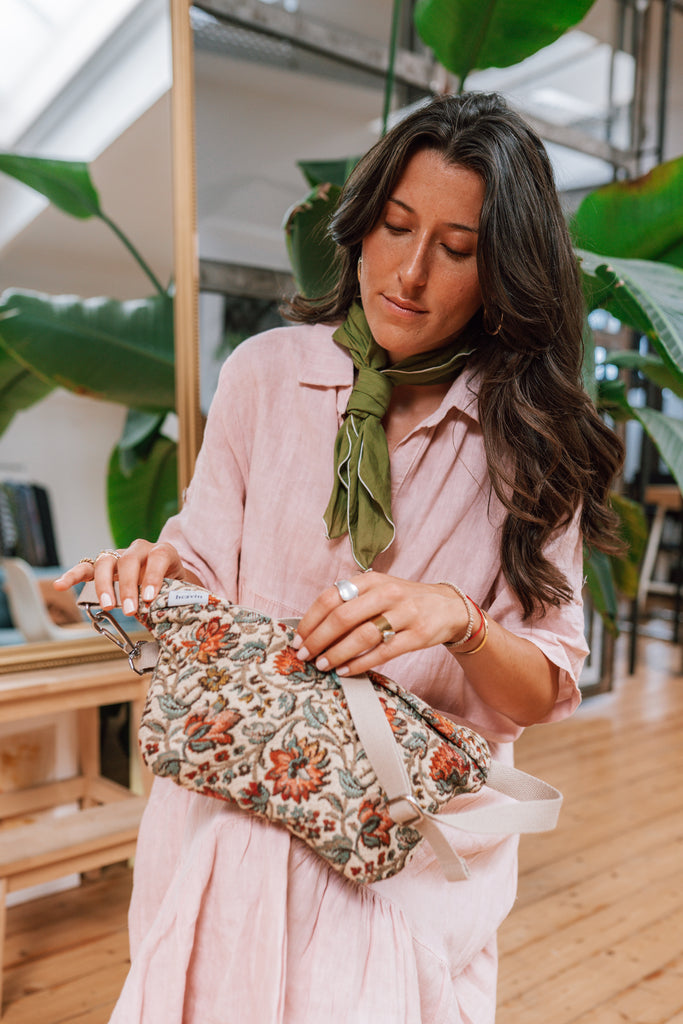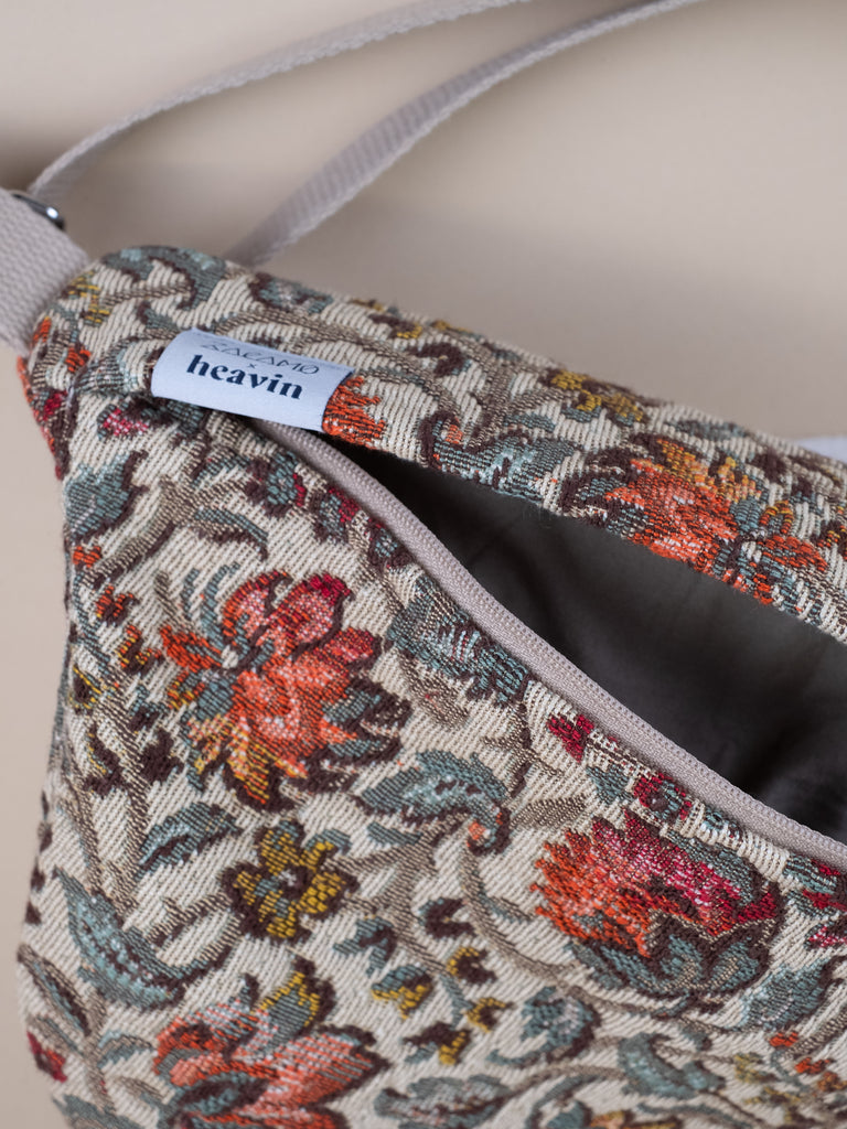 Die Bauchtasche aus diesem wunderschönen französischem Jacquardstoff vereint verspieltes und klassisches - die Farbpalette ist sehr vielseitig, sodass du die Tasche beliebig kombinieren kannst und sie sich in viele Outfits einfügt.