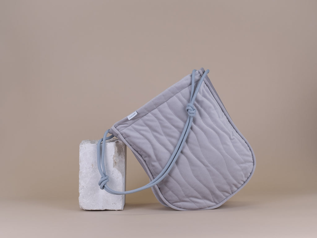 Auch mit diesem Modell sind wir wieder einen großen Schritt Richtung Umweltbewusstsein gegangen – der graue Samtstoff stammt aus einer Lagerauflösung und wäre wohlmöglich entsorgt worden und für die Wattierung benutzen wir ausschließlich recyceltes Volumenvlies.