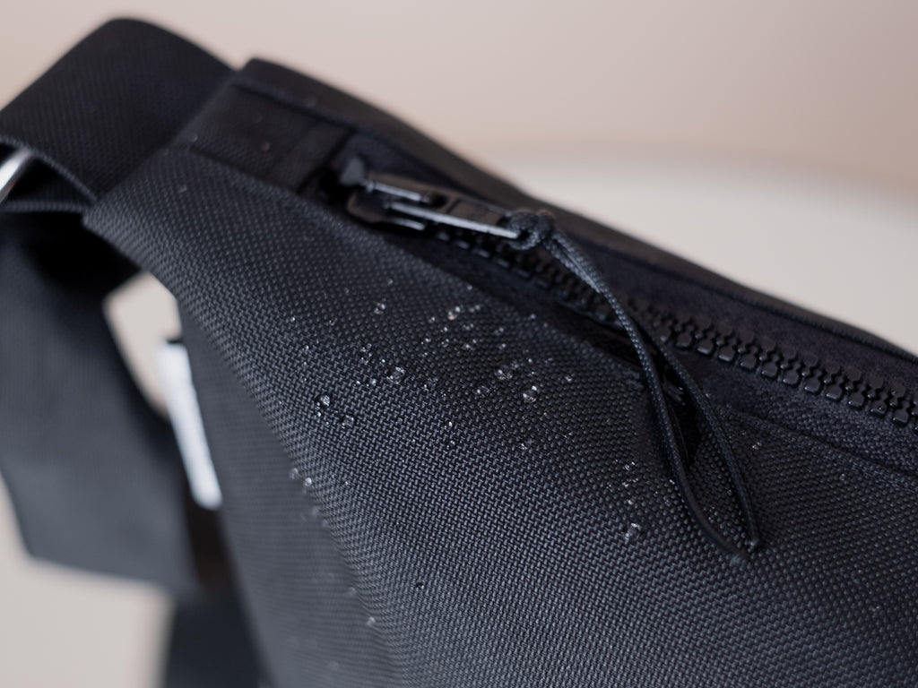 • wasserdichtes Polyester aus recycletem PET (u.a. PET-Flaschen) aus EUROPA, hergestellt in Deutschland