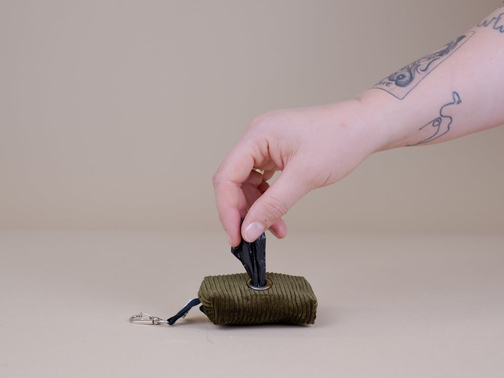 Kotbeutelspender • Cord • olivgruen/kamelbraun/maisgelb/greigebraun/tiefschwarz