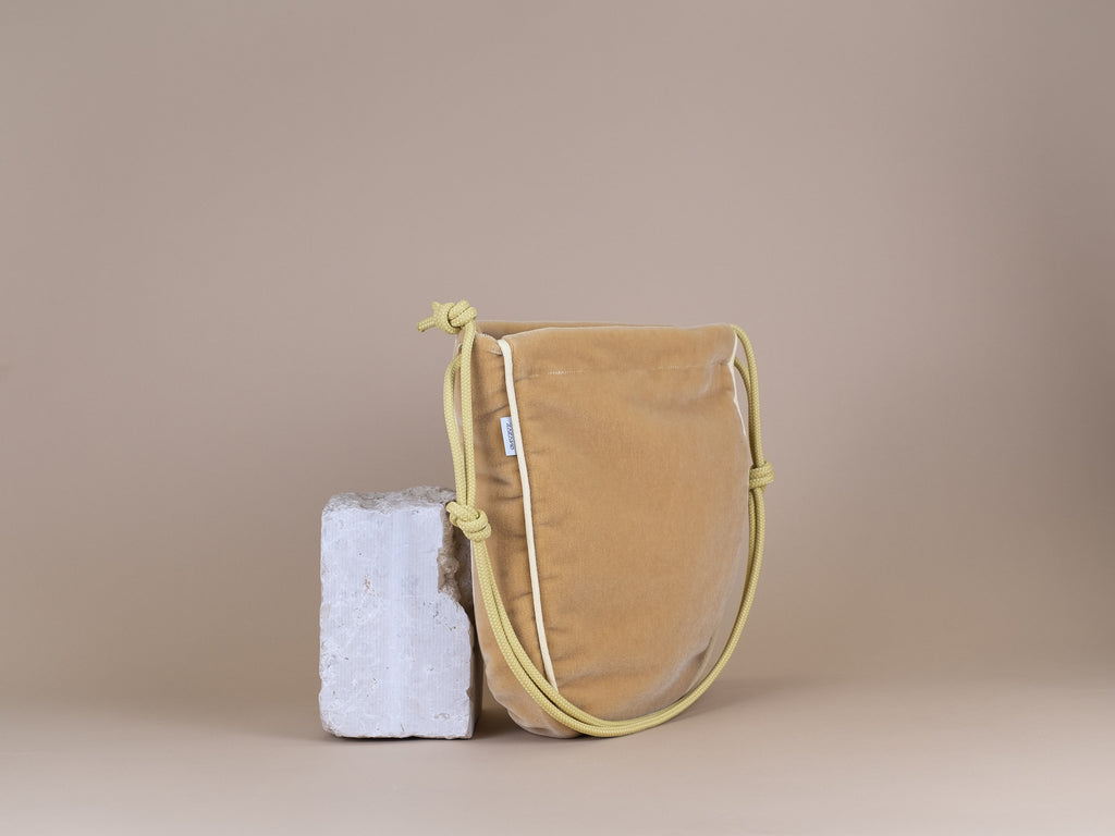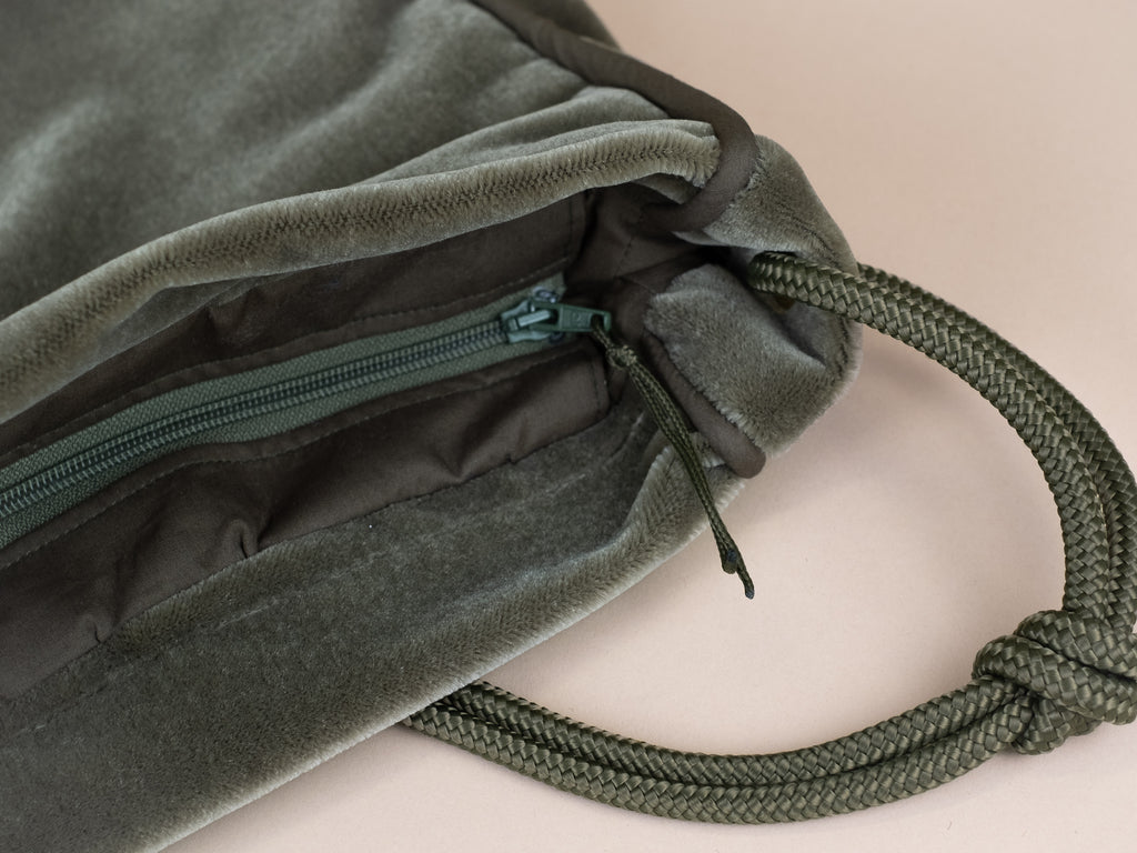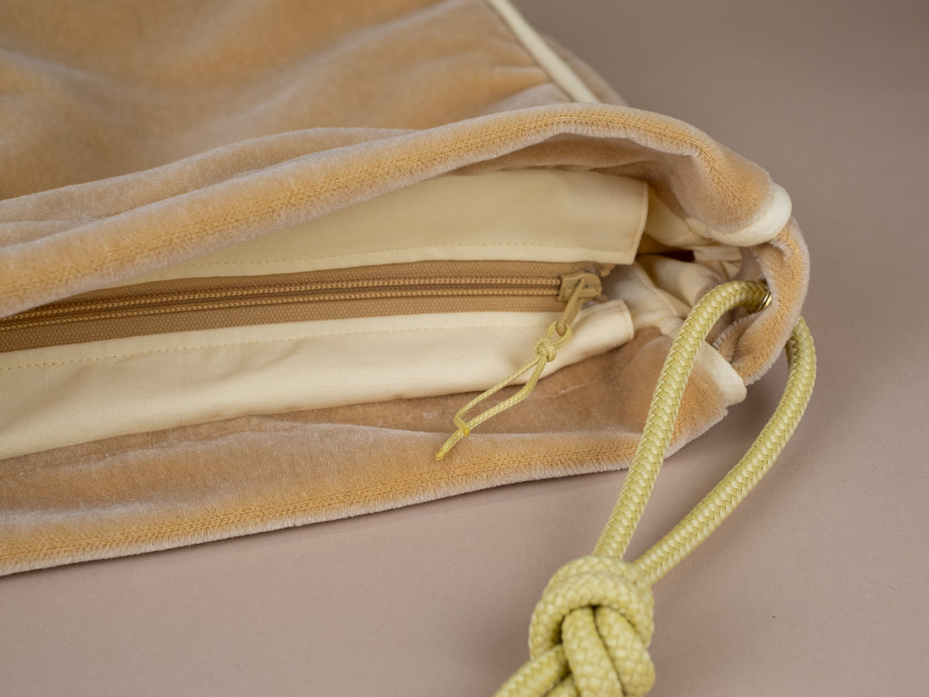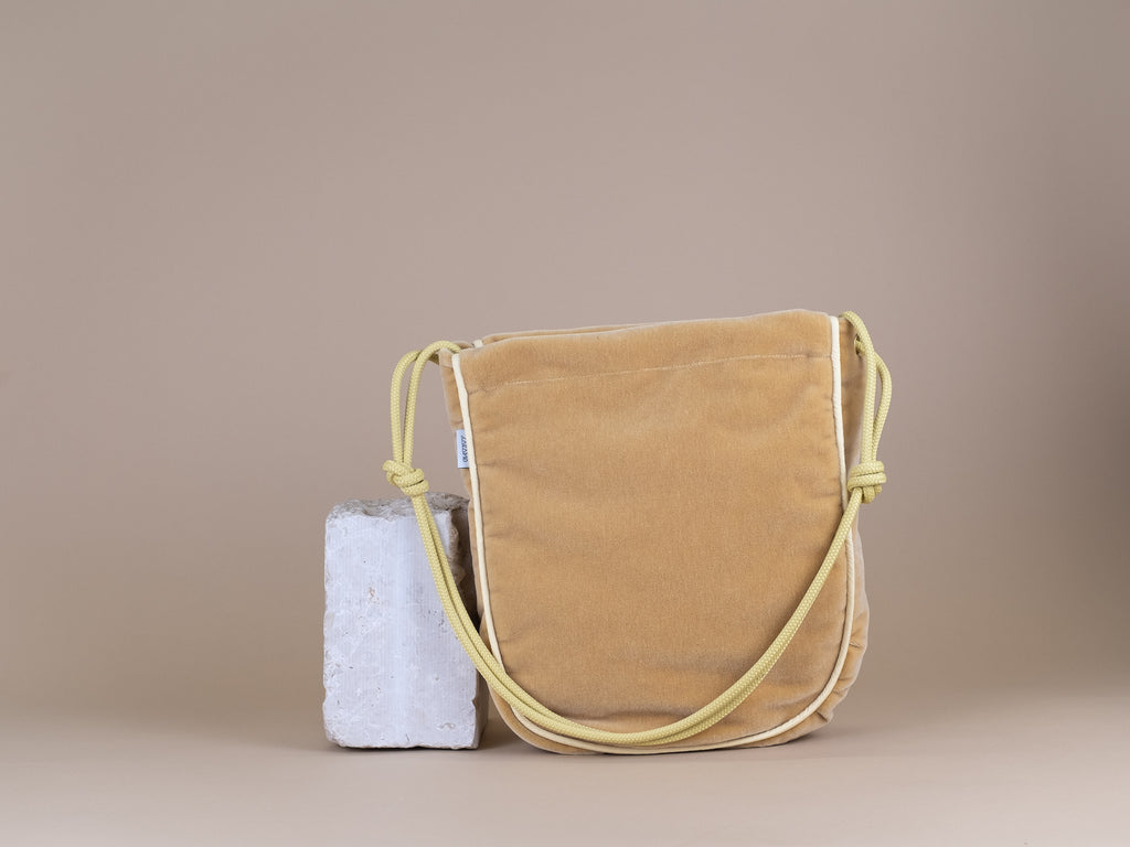Die Tasche lässt sich mit einem langen Reißverschluss maximal weit öffnen und die Kordeln kannst du durch einen einfachen Knoten beliebig in der Länge verstellen. Trag sie also modisch knapp unter deinem Arm oder funktional lang als Crossbodybag bei deinem nächsten Ausflug auf dem Rad.