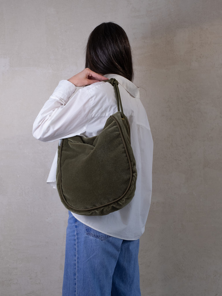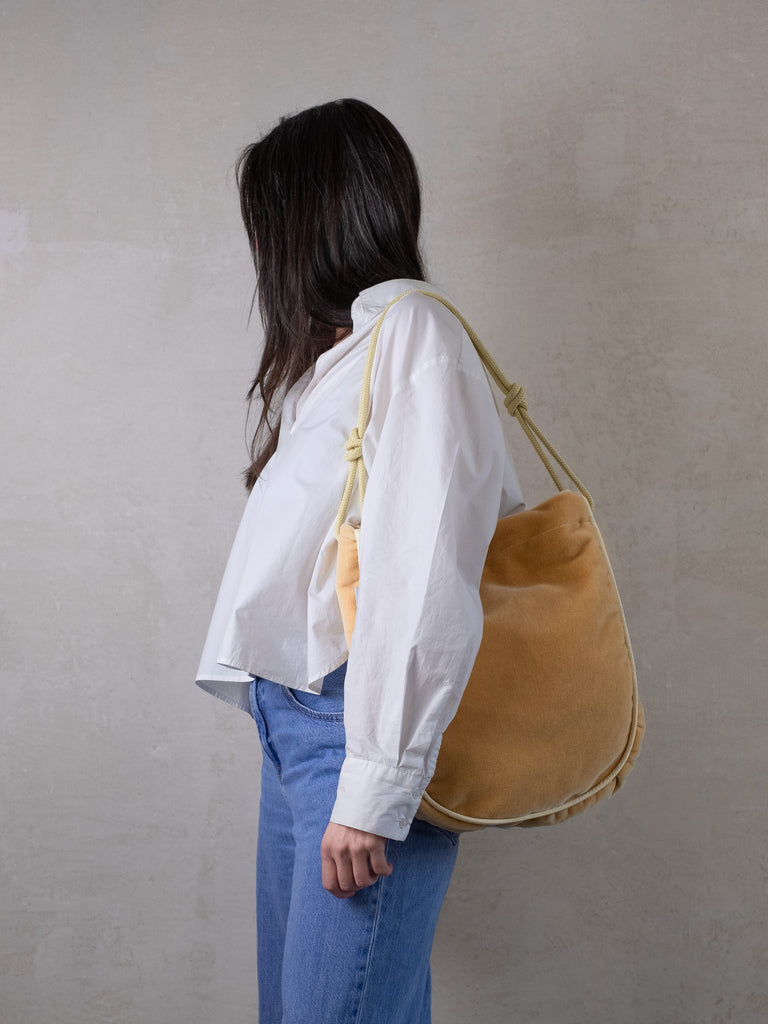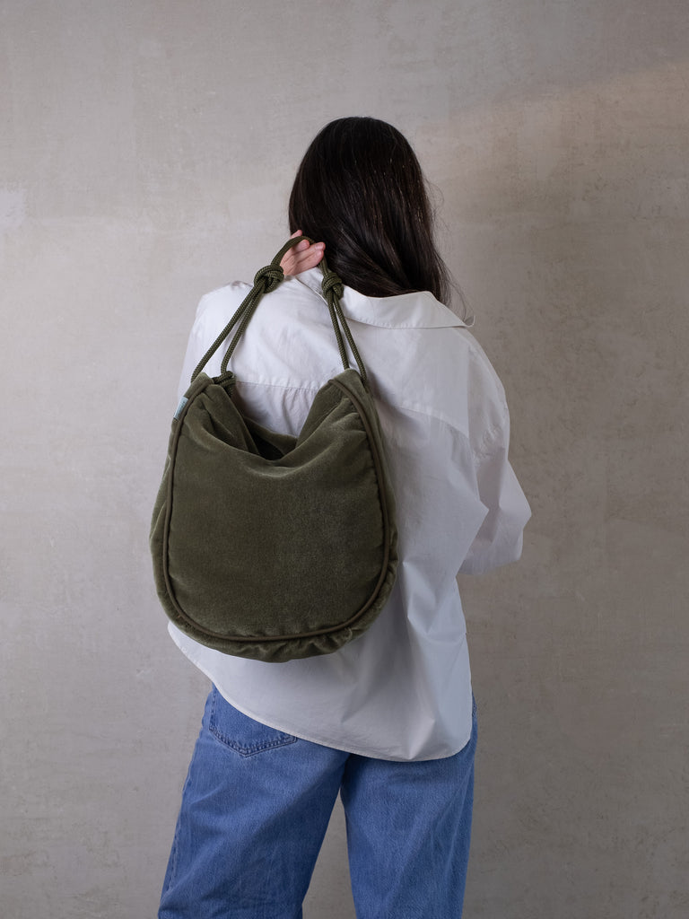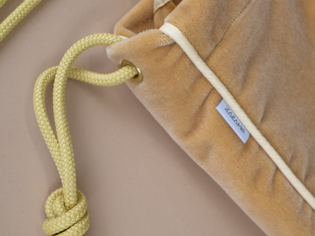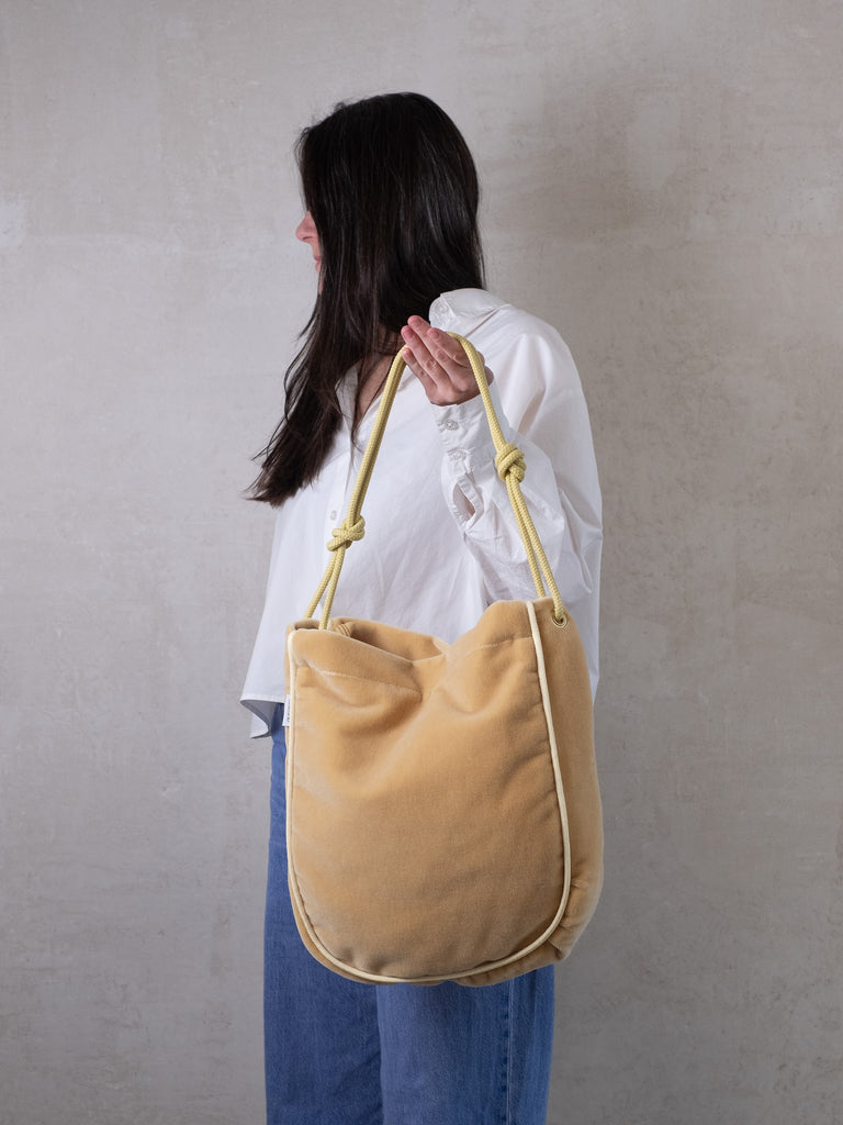 Die Tasche lässt sich mit einem langen Reißverschluss maximal weit öffnen und die Kordeln kannst du durch einen einfachen Knoten beliebig in der Länge verstellen. Trag sie also modisch knapp unter deinem Arm oder funktional lang als Crossbodybag bei deinem nächsten Ausflug auf dem Rad.